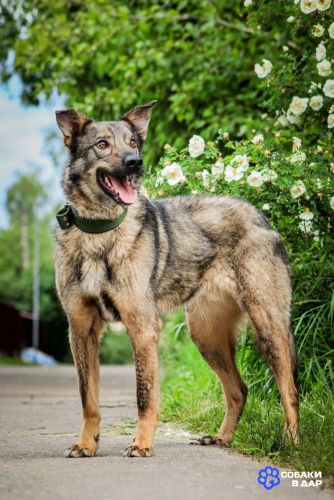 Спасен в щенячьестве с переломами лап и ребер, но сохранил доверие к людям.