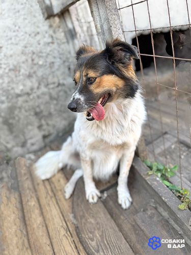 Размером ниже колена, сейчас живет вместе с другими собачками в приюте, дружелюбная и совсем не шумная — практически не лает.