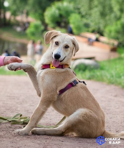 Отлично ходит на поводке, хорошо ездит в машине. Обожает играть в мяч, да и просто в догонялки, если разыграется, может щипаться как гусь).