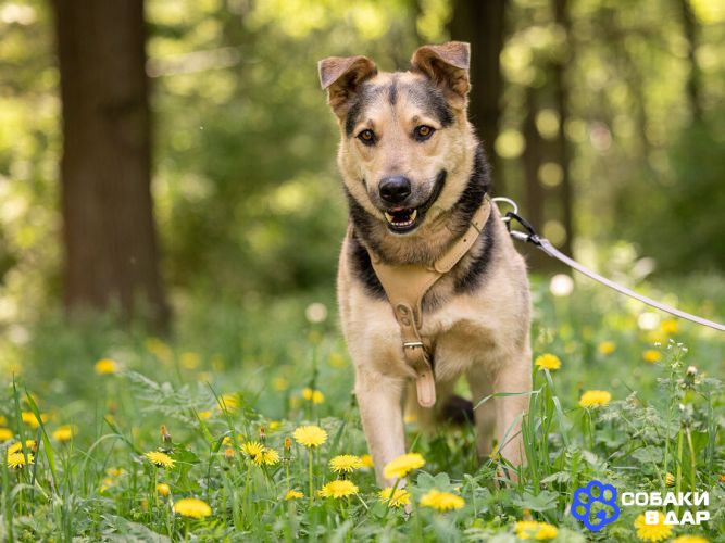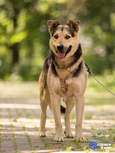 Барри около 4 лет. Он — метис овчарки, активный пёс с энергией, умом и добрым сердцем.
