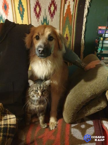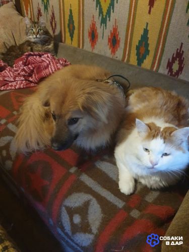 С другими собаками спокойный, хорошо уживается, с девчонками особенно и дружен с кошками. Небольшой, щупленький, с самыми выразительными глазами. Кастрирован, привит, чипирован, есть вет паспорт.
