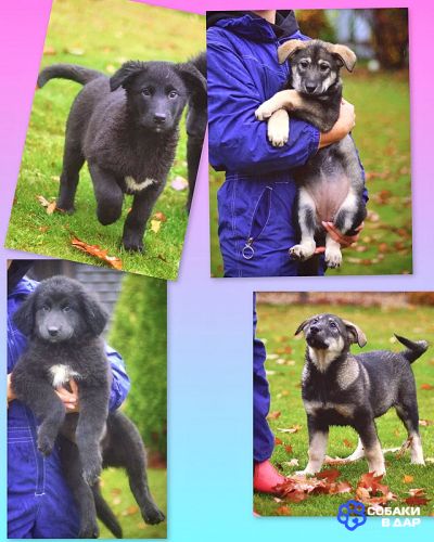 Возраст примерно 2,5 месяца, вырастут среднего размера, подойдут для проживания как в квартире, так и во дворе с теплой будочкой или вольере (строго НЕ на цепь).