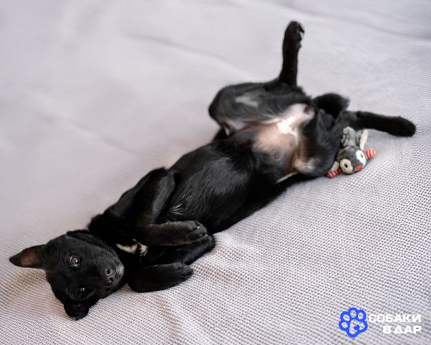 Молли — классическая чёрная собака-метис: острая мордочка, висячие уши, белый “галстук” на груди и удивительно умный взгляд. Эти собаки отличаются дружелюбным, весёлым и очень тёплым характером. Молли — именно такая, но при этом особенная.