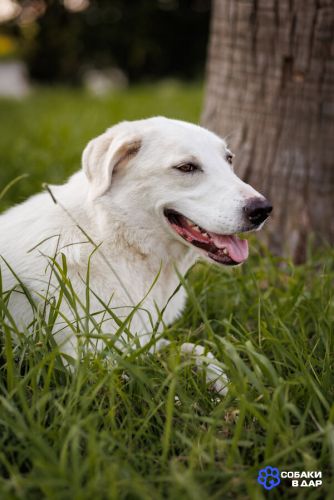 Беляш прекрасно ладит с другими собаками, спокойно реагирует на окружающих и отлично подойдёт как для семьи, так и для человека, который ищет верного друга.
