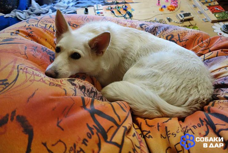 Чиффа живёт дома с хозяевами и отдаётся очень вынужденно — из-за аллергической астмы у владельца. Это не «проблемная» собака, не приютская история, а болезненное, тяжёлое решение.