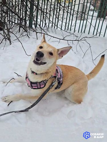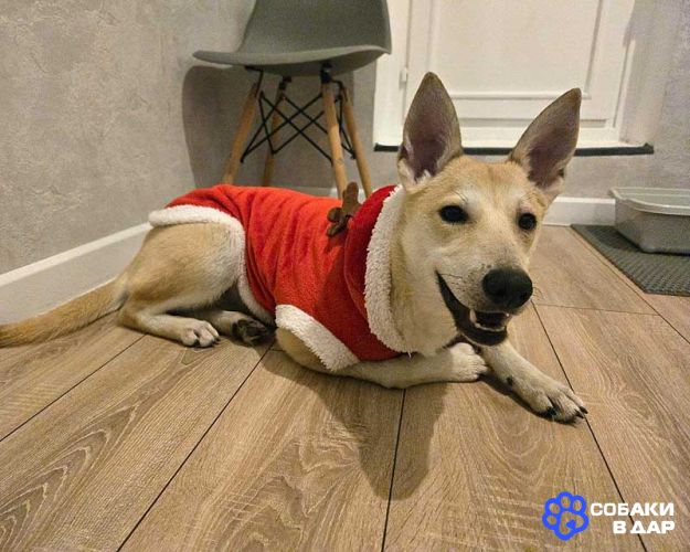 Чапе всего 6–8 месяцев, она ещё щенок — 14 кг любопытства, ума и чистой любви. Та самая собака, которая смотрит в глаза так, будто всё понимает. И, честно… она правда очень умная.