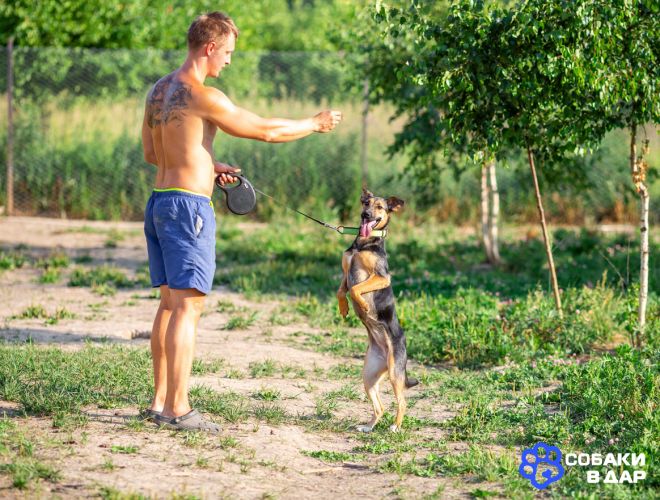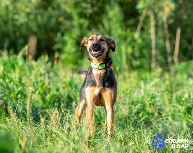 Ива — настоящая искра радости! Эта озорная и игривая собачка (почти 3 года, 20 кг) превращается в нежного котенка от ласковых рук: тает от поглаживаний и мурлычет от счастья.