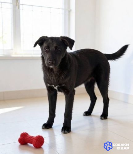 У Сени на грудке белая галочка , короткие ушки, глаза пуговки. Он самый маленький в помете, но самый смышленый и деловой парень.