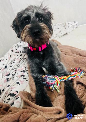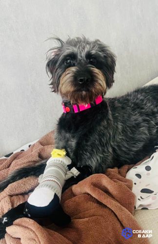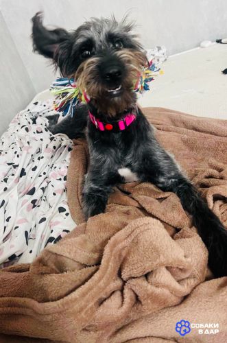Возраст примерно 2 года. Привита, обработана от блох и клещей, проглистована, в ближайшее время будет стерилизована. Руна активная, добрая собака, любит играть, хорошо ладит с другими животными, кошек иногда может погонять, без фанатизма. Руне сложно надолго оставаться дома одной; с другими животными она лучше переносит разлуку с человеком. В туалет ходит и на улицу, и на пеленку, ест влажный и сухой корм.